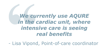 Daarnaast hebben we geïnvesteerd in het AQURE-POC datamanagement systeem voor directe overdracht van resultaten naar het klinisch ziekenhuisinformatiesysteem. De AQURE is aangesloten op onze ABL90-instrumenten en wordt gebruikt voor het beheren van de ABL825-analyser in onze operatiekamers."